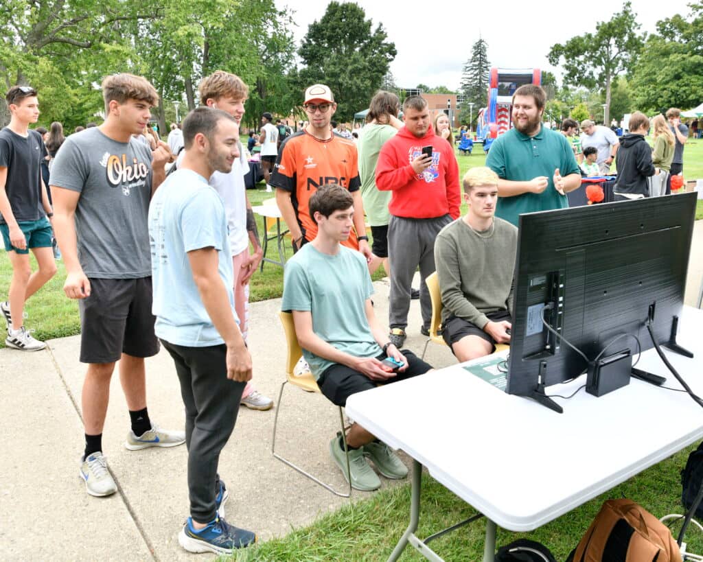 (ABOVE) The Esports Club staged a recruitment event at the College’s annual Organization Fair in late August. Zach Sizemore, its founding president, is lectured at the upper right.