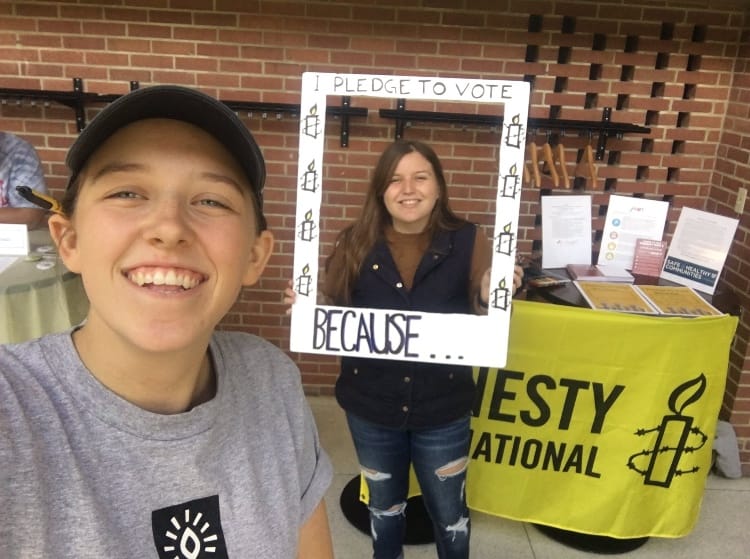 Our college Amnesty International chapter is just one of thousands of chapters located all over the world. Our members, alongside seven million other Amnesty International members, work to defend human rights locally, nationally, and internationally. Our group works hard to create engaging and educational campaigns that highlight human rights abuses and offer participants an opportunity to be part of compelling campaigns that demand human rights be protected. We envision a world where all people are treated with dignity and respect. In light of that core value, our campus chapter has become home to a diverse group of activists. We work tirelessly defending human rights, but also make time to hang out, enjoy each other’s company, and get to know each other. For our members, Amnesty International is more than a resume builder or volunteer opportunity. It’s a group we look to for support, guidance, and friendship. Come find us tabling, protesting, canvassing, or building visual actions and ask us about how you can join the Famnesty- we’re excited to welcome you into the Fam!