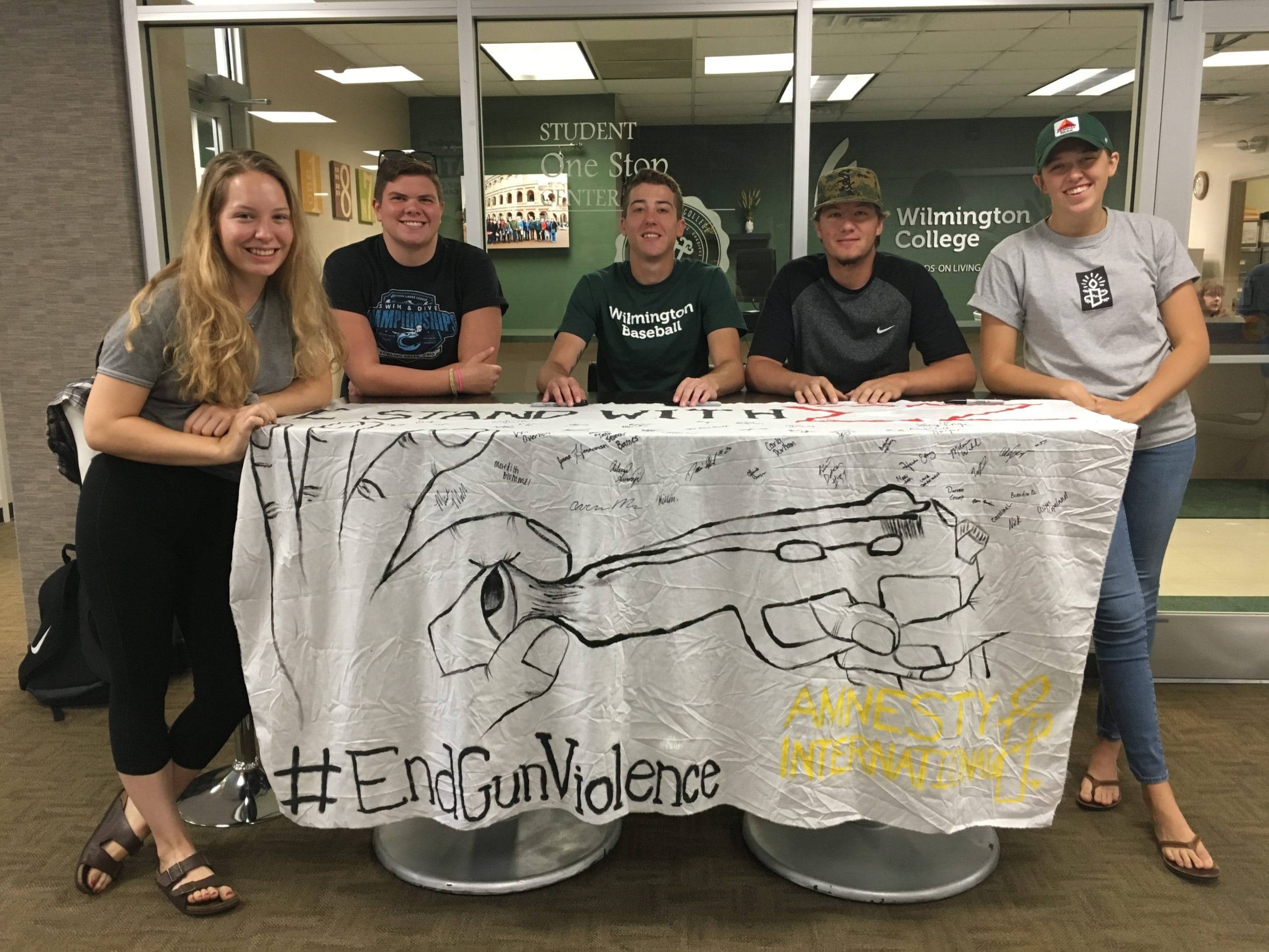 "Amnesty International is my home at Wilmington College. Not only do I get to work on the human rights issues I care about, but, also, I get to work with my friends -- it is a FAmnesty. We go to Columbus to lobby at the Statehouse on gun violence, paint banners for events including Homecoming, make visual actions such as a door on the Mall for National Coming Out Day, table for signatures in Pyle on crises like the Amazon Rain forest, bring speakers to campus relating to the Death Penalty, and so much more. Being able to raise awareness and educate the greater community is such an exciting opportunity, and it is empowering to be trying to make a difference." -Lucy Enge
